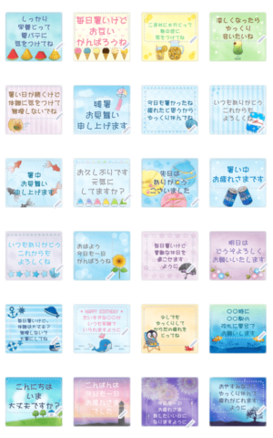 梅雨明けから暑い夏の終わりにかけて…季節に合わせたお手紙のようなスタンプができました。好きな文章を入れられる水彩えほんシリーズのメッセージスタンプです。 現在この商品は一部のスマートフォン版LINE 10.3.0以上のトークルームでのみ使用できます。動作環境の最新情報はヘルプをご確認ください。さくらまいこ より発売