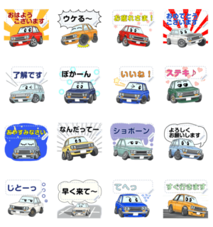 The510Jungleから愉快な旧車のメッセージスタンプが登場!メッセージを自由に変更できるのでじゃんじゃん使ってね。 現在この商品は一部のスマートフォン版LINE 10.3.0以上のトークルームでのみ使用できます。動作環境の最新情報はヘルプをご確認ください。しげぽん より発売