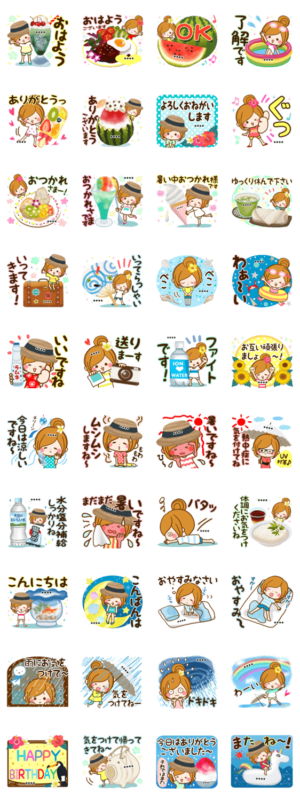 使用頻度が高いスタンプから梅雨〜夏にたくさん使えるスタンプをおさえた万能スタンプ☆カスタムバージョンです♪「ほのぼのカノジョ」シリーズ
