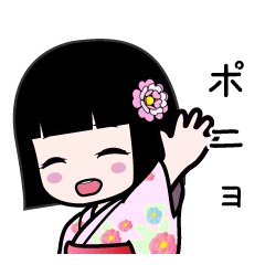 『ポニョ』用のよく使う言葉を詰め合わせた座敷童子のスタンプです。和服 着物 浴衣かがりひな より発売