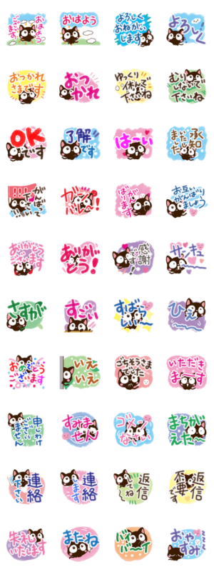 『小さい黒猫スタンプ』から、『水彩』編になります。文字を大きく水彩画風に仕上げました。カラフルで目立ちます。クロネコ好きな方にぜひ。【かたこ】
