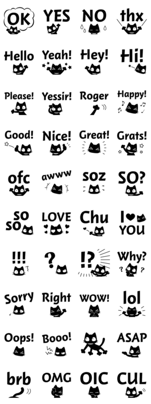 黒猫のでか文字スタンプ(英語版)のダウンロードはこちら↓