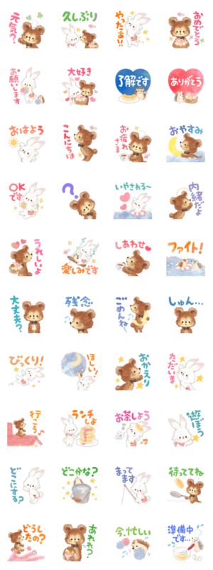 くまとうさぎ、ハリネズミのほのぼのとした癒し系スタンプ!友達、家族、恋人同士や年上の方など、誰にでも毎日使えます♪