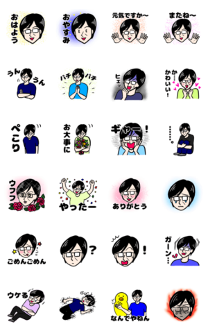 ショートカットでメガネをしているおばさん専用のスタンプです。Piloco より発売