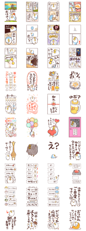 あのとり。のスタンダード・漫画風・吹き出し風・デカ文字風の4つの味が楽しめるよくばりクォーターBIGスタンプです! ※このスタンプはトークルームで大きく表示されるBIGスタンプです。ダーシオ より発売