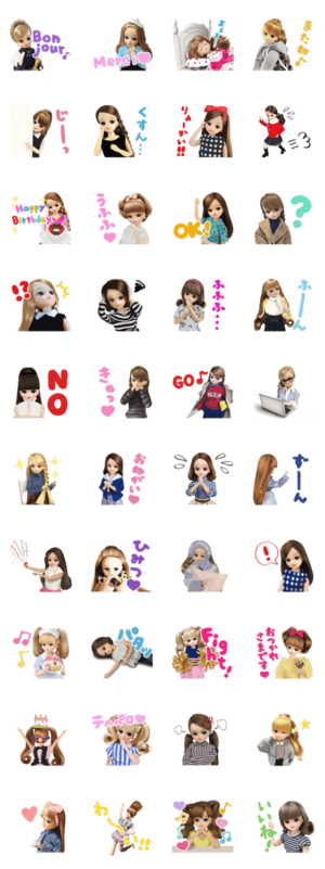 国民的着せ替え人形の「リカちゃん」がスタンプに!リカちゃんツイッターやインスタグラムでおなじみのボンジュールやメルシーで女子力アップを目指しちゃお!うふふ♡