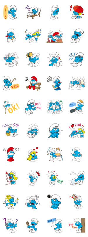 それぞれの性格が引立つスマーフたちのタウンにようこそ!可愛くてキュートなスマーフたちのいたずら姿をLINEスタンプで会って見ましょう!
