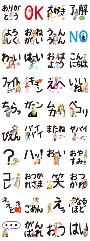 ファッションイラストとデカ文字でダイレクトに伝えるスタンプ。