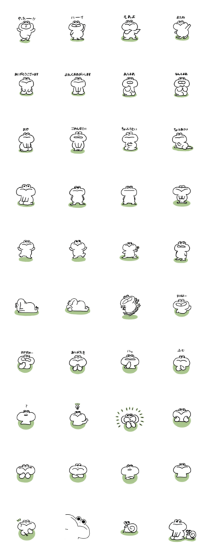 むちむちとしたカエルのスタンプです。お友達のカタツムリもいます。kakutomato より発売