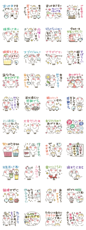 まるぴのスタンプ75作目は、仕事や勉強スポーツを頑張っている人へ送るスタンプです。受験、部活、家事、育児、応援しています!かなぴ より発売
