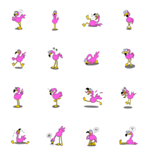 表情豊かなカートゥーン調のフラミンゴのスタンプです。アル太研究所 より発売