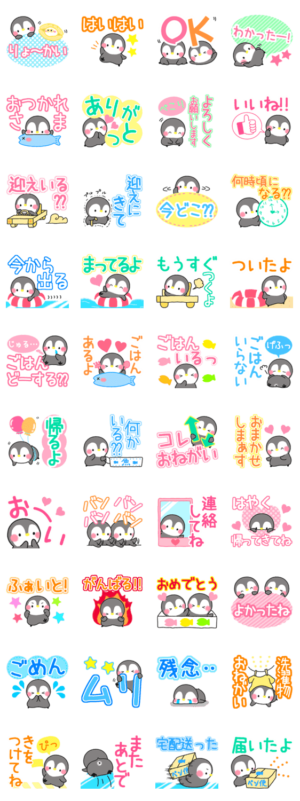 毎日使える便利なかわいいほのぼの癒し系子供のメッセージペンギン♡デカ文字の家族専用!カップル友達家族夫婦で日常使いにしてね♡ぽぽんのスタンプ第60段♡
