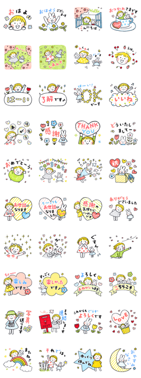 心がぱっと明るくなるような色使いと絵柄。新生活のフレッシュさその物の様なスタンプだと思います。