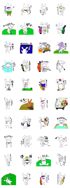 ゴルフにハマっちゃったうさぎのスタンプです。KEMY より発売