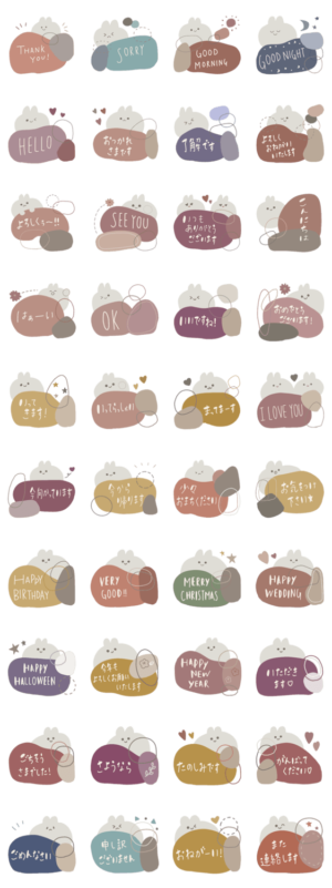 くすみカラーで毎日使えるシンプル可愛い挨拶スタンプ♡うさぎ/オレンジ/ベージュ/ゆかんこ より発売