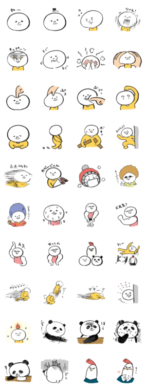 まるっともっちりもちぼんのフツーのスタンプ。お友達のぱんだとにわとりもよろしくね☆acnooon より発売