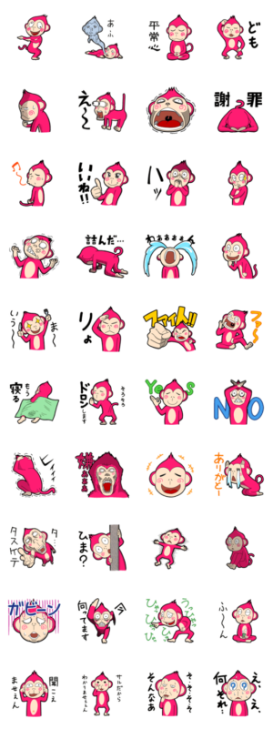 ちょっとおちゃめなピンク色のおサルのスタンプです。NOBO より発売