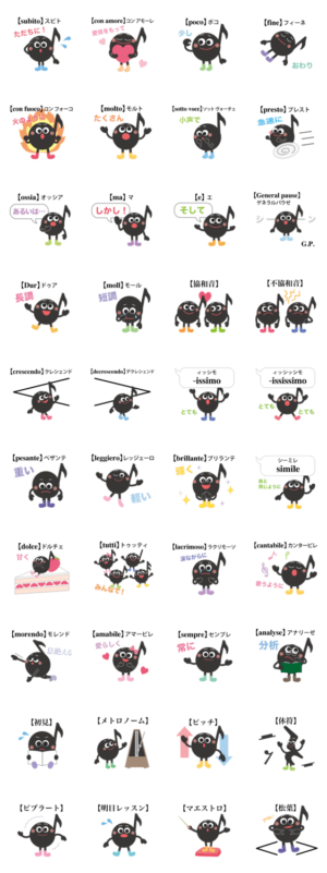 8分音符くんのスタンプの第2弾です。音楽用語を日常会話に取り入れよう!音楽用語の勉強にもなるかも?YURI より発売