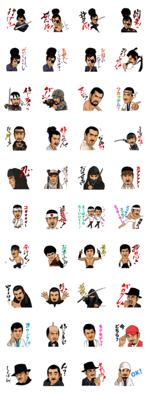 千葉真一公認スタンプが登場! 懐かしの名シーンから日体大の「エッサッサ」「えばらたいく」や最近の千葉ちゃんまで盛りだくさん! スタンプの文字はなんと本人の直筆!ニクキュー より発売