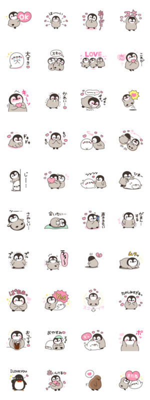 可愛いぺんぎんのラブラブなスタンプです♪家族・恋人・友達に大好きな気持ちを伝えよう!