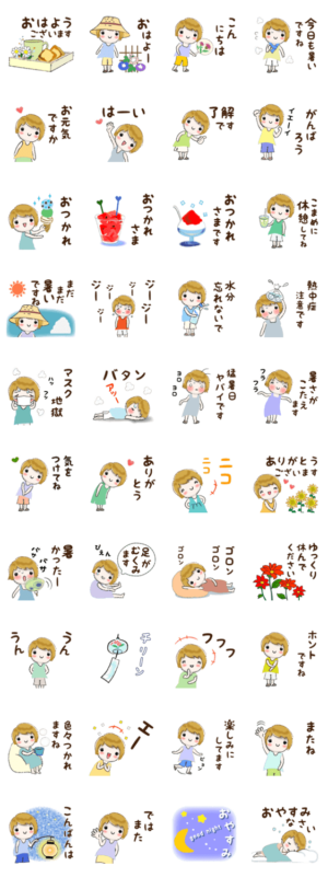普段どうりに使いやすい、まだまだ秋が遠い暑さ真っ盛りの真夏用スタンプです。