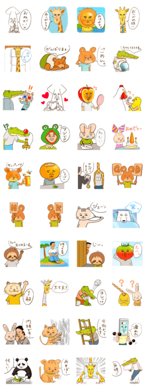 キリン、ワニ、おじさんなどなど、keigo のキャラクター達がスタンプで登場。いろんな想いをお伝えします。Bullz inc. より発売