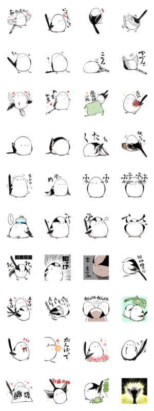 エガナさんがはしゃいぐスタンプです。エナガの親分と一緒です。かから より発売
