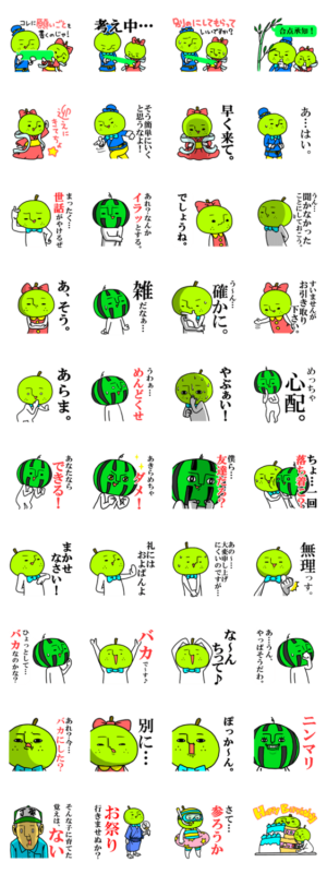 鳥取県のご当地キャラ、二十世紀☆梨男(ニジッセイキ☆ナシオ)のスタンプ第四弾です。第四弾は7月バージョンです。chikuwa より発売