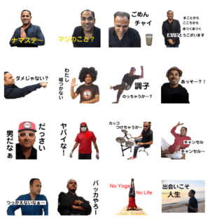 インドの老舗日本人宿サンタナ オーナー、フォクナの日本語スタンプ。「みんなで、つかっちゃうかぁ?」インド サンタナ TV! より発売