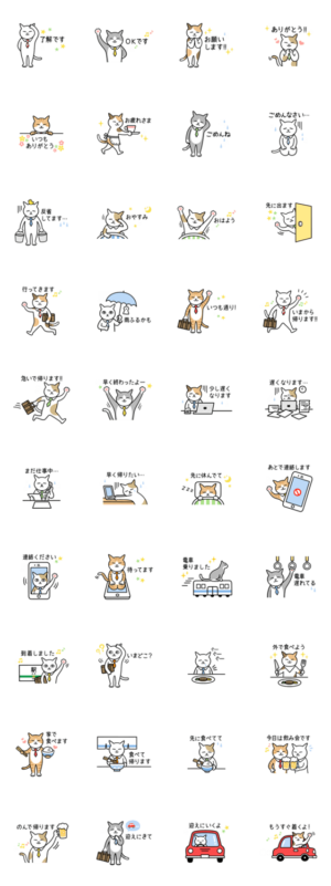 ニャントーク2作目。旦那さんやお父さんから家族へ「了解です」「今から帰ります」など、日常の連絡用スタンプです。