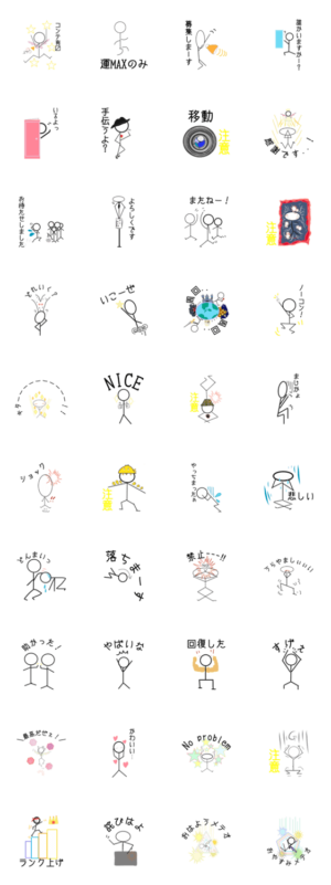 第二弾です。マルチに使えるシンプルなデザインです。棒人間がモンスターを倒しに行くようなストーリーをスタンプにしました。
