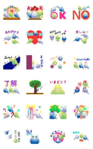 動くスタンプにかわいいインコトリ尾が登場! 毎日使えるスタンプが満載です。LIME より発売