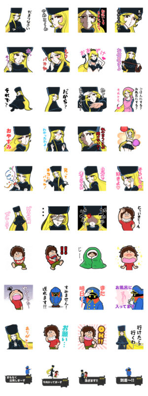 『銀河鉄道999』のスタンプが遂に登場!憧れのメーテルでトークを華やかにしよう!もちろん、鉄郎や車掌もいるぞ! 「私はメーテル。あなたの思い出の中にだけいる女」