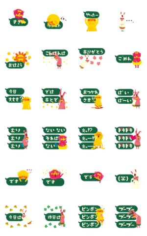 きいろいくまのきぐまくんの動くスタンプ★第2弾は繋げて使える吹き出しです。語尾に「です」をつければゆるゆる敬語に★頭に今日や昨日をつけられるお疲れさまも便です★karin より発売