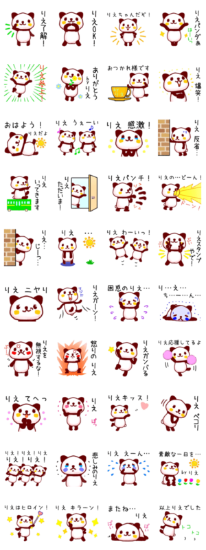 パンダのリエさんスタンプです。理恵さん、梨絵さん、里恵さん。まだまだ沢山のリエさんへ。是非、使ってみて下さい。よろしくお願いします。ペコリ より発売