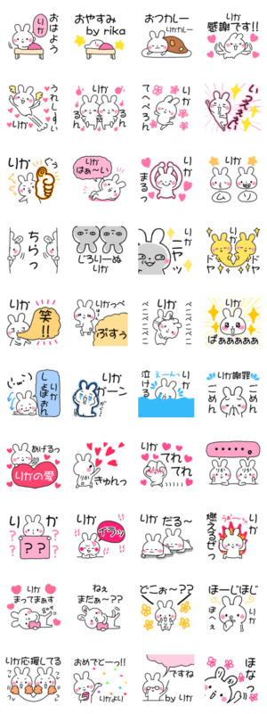 リカ、りかちゃんが日常的に使える専用の便利なかわいいうさぎの名前、あだ名スタンプ♡彼氏彼女のカップル友達家族夫婦に毎日使える♡ぽぽんのスタンプ第77弾♡ぽぽんえす より発売