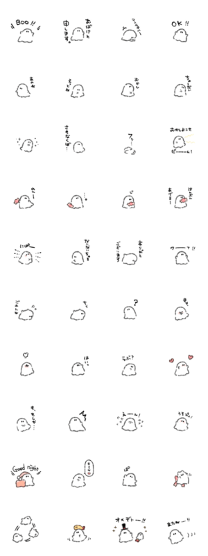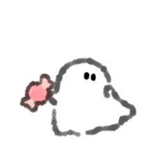 えびふらいのお友達のちっちゃなおばけのスタンプ。 半分こしておかしを食べるのがだいすき!SHON より発売