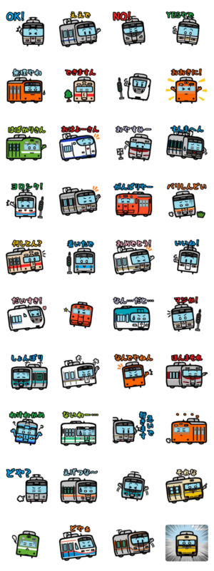 デフォルメした可愛い電車のスタンプです。溝犬堂 より発売