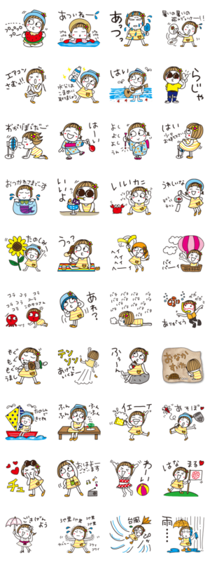 はな子✿夏と地震と台風編。 スタンプに書いてある文字一覧