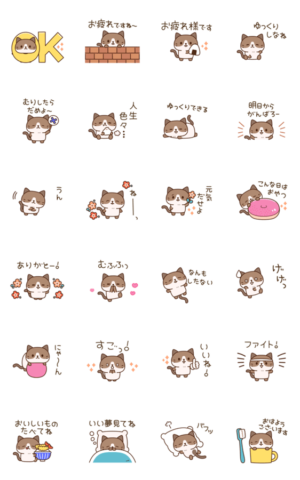 ほんわかと優しいネコさんが気づかったり優しい言葉をかけたりします。家族や友達など声をかけたいときに使えます♪DECOR より発売