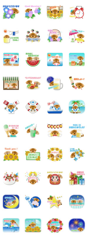 夏に使えるトイプードルのスタンプですAnge より発売