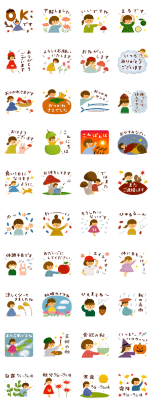 季節のごあいさつ【9月・10月】改訂版 スタンプ画像一覧
