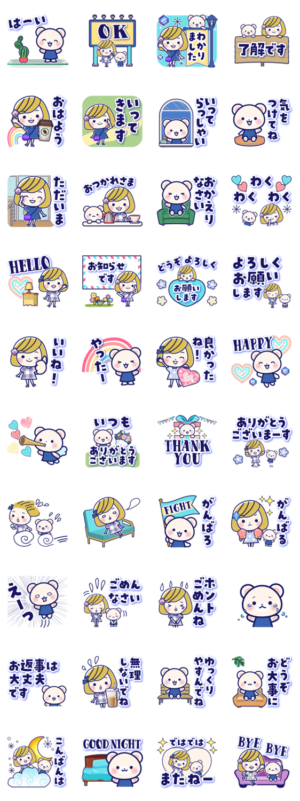大人可愛い女の子としろくまの日常スタンプです。