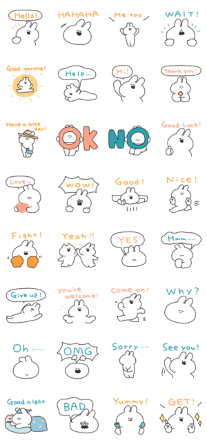 英語を話すうさぎのスタンプです。ナポリ より発売