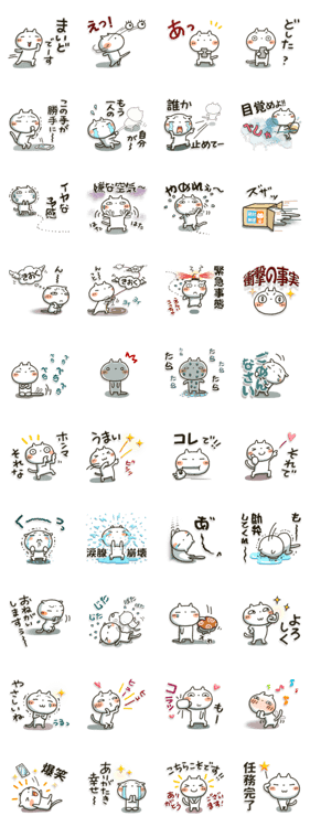 ゆるかわいい白ネコのスタンプです。明るくユニークなスタンプをラインに飾ってトークを盛り上げましょう。