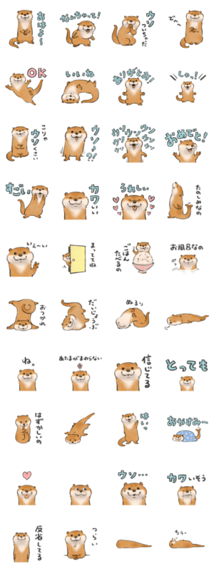 犬でも猫でもないカワウソというのが味噌なスタンプで、可愛いけど独特なテイストが通好み。