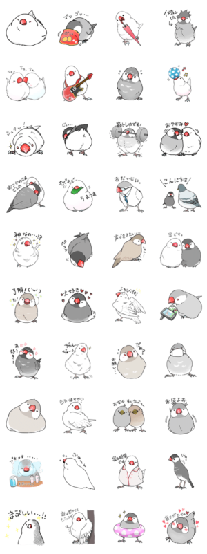 もっちり文鳥たちがあなたの気持ちを代弁します!恋人・家族・友人に幅広く使えるスタンプです♪虎つぐみ より発売