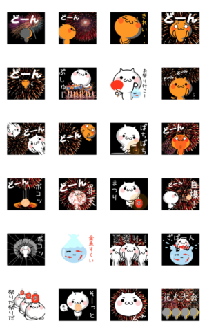 夏だ!花火だ!お祭りだぁ!「花火&お祭り【動く▶︎】たくみちゃん 6」ねこ?くま?動くたくみちゃんスタンプ、その6です