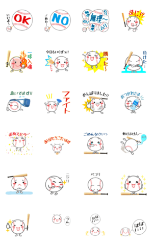 野球ボールが、日常でも使える可愛い動くスタンプになりました。野球ファンの方の LINEスタンプにピッタリです!!