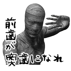 「ミイラ 白いの」より攻撃的で祭り炎上等、揉め事が大好物なミイラ。特定のスタンプと組み合わせる事で、縦ワイドのスタンプ表現になり迫力満点です。